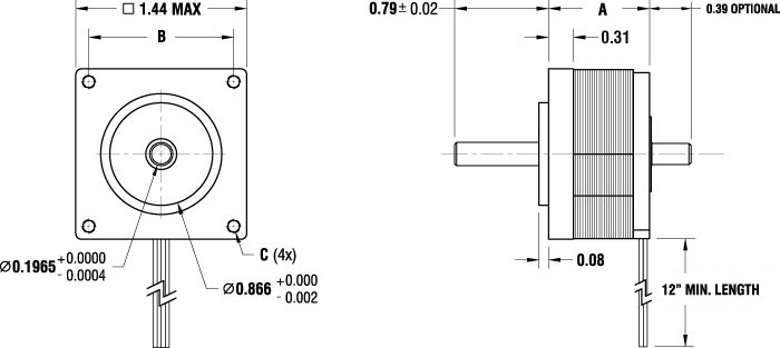 电机外形尺寸(单位:英寸)